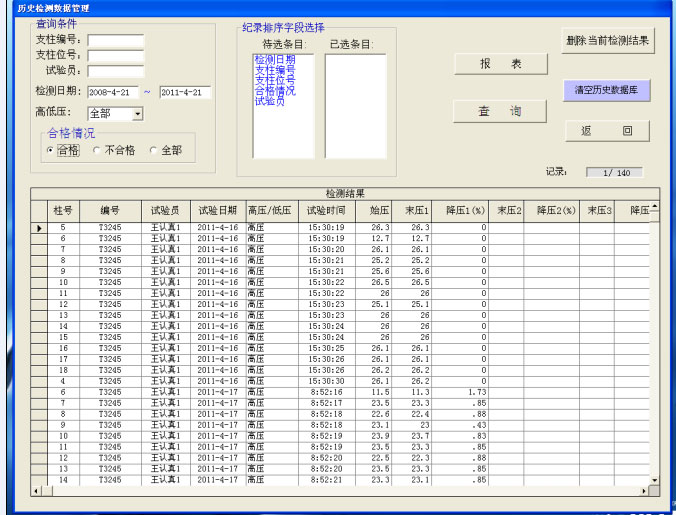 5、采用高級數(shù)據(jù)庫管理技術(shù)對檢測數(shù)據(jù)進行管理,可以對存儲的檢測數(shù)據(jù)按不同的方式進行排序、查詢及打印。